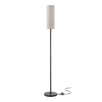 Design: Modern luxury floor lamp with fabric lampshade and tall standing structure.